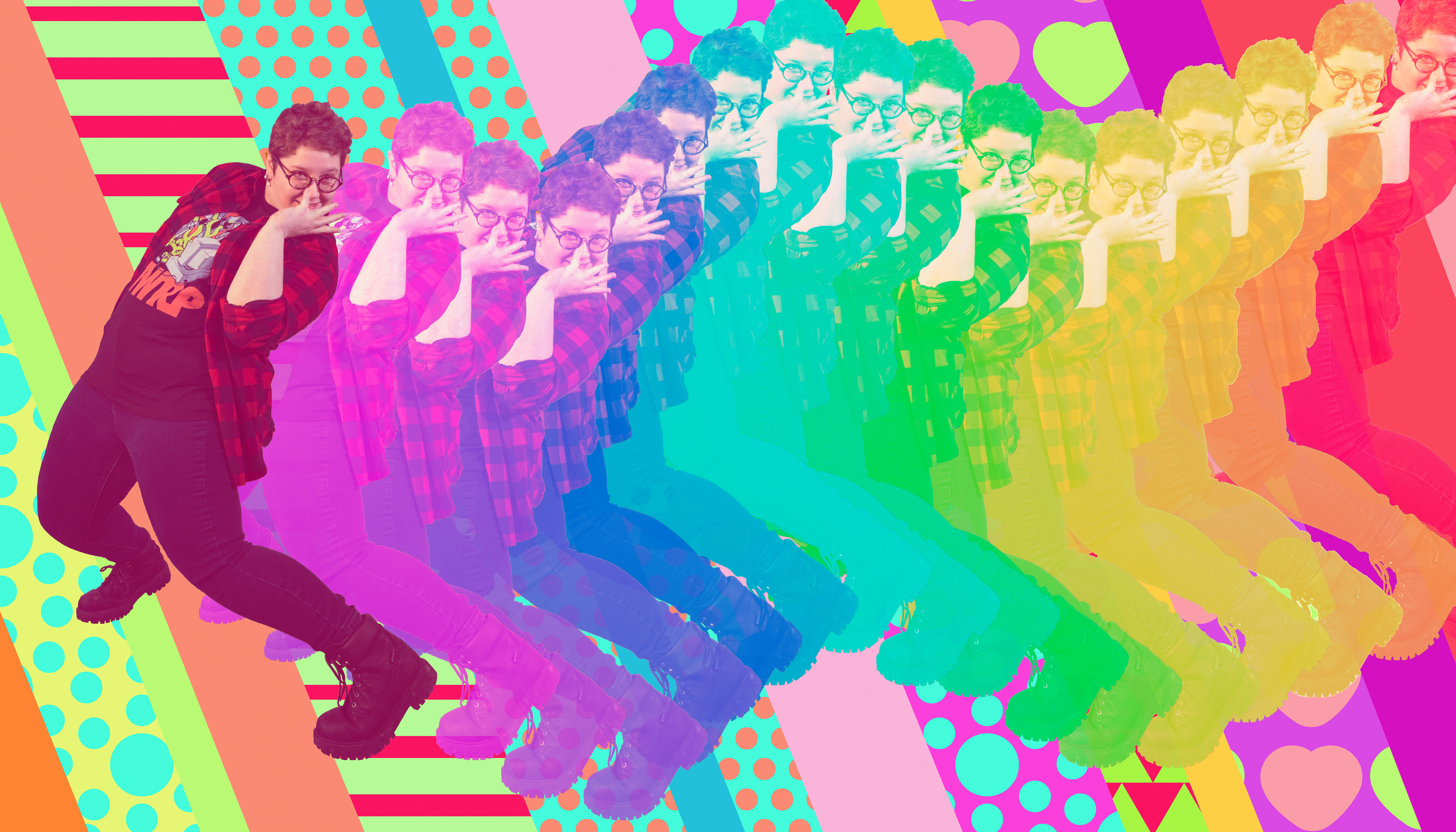 At the time that this portrait series was made, I was completely enamored with the pattern work and electric color patterns of the 1980’s, and I wanted to make some beautiful disasters of my own. I worked away at making vibrant and loud patterns in Illustrator, while in Photoshop I ran wild with color overlays and filters on pictures of myself. The result was a ode to the era, and a colorful declaration of play.